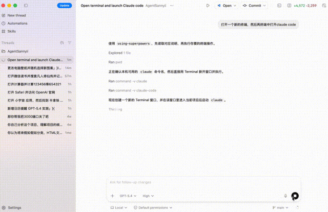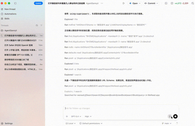 简直你电脑上任何APP,齐不错被GPT-5.4所调用,比如掀开微信念书。