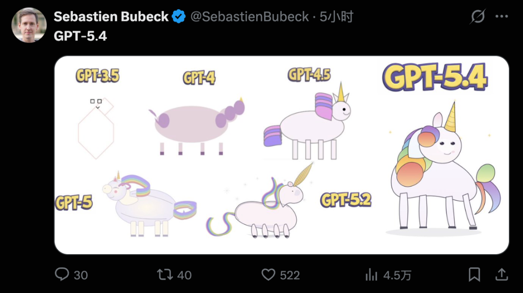 OpenAI的了得科学家Sebastien Bubeck用一幅梗图来刻画GPT-5.4编程才智提高。