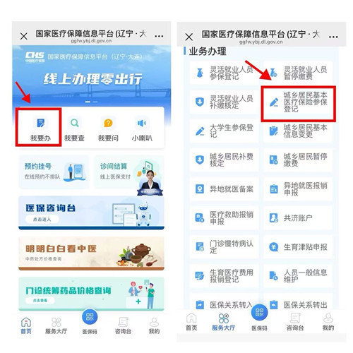 1.线上办理途径:登录“大连市医保局”微信公众号进行办理。干预“服务大厅”,点击“我要办”——“城乡住户基本医疗保障参保登记”,填写信息并上传干系材料。