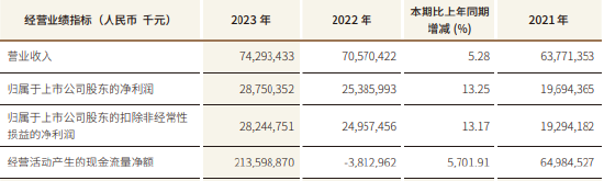 2021年、2022年、2023年,江苏银行的交易收入隔离为637.71亿元、705.70亿元、742.93亿元;包摄于上市公司鼓动的净利润196.94亿元、253.86亿元、287.50亿元;包摄于上市公司鼓动的扣除非时常性损益的净利润隔离为192.94亿元、249.57亿元、282.45亿元。