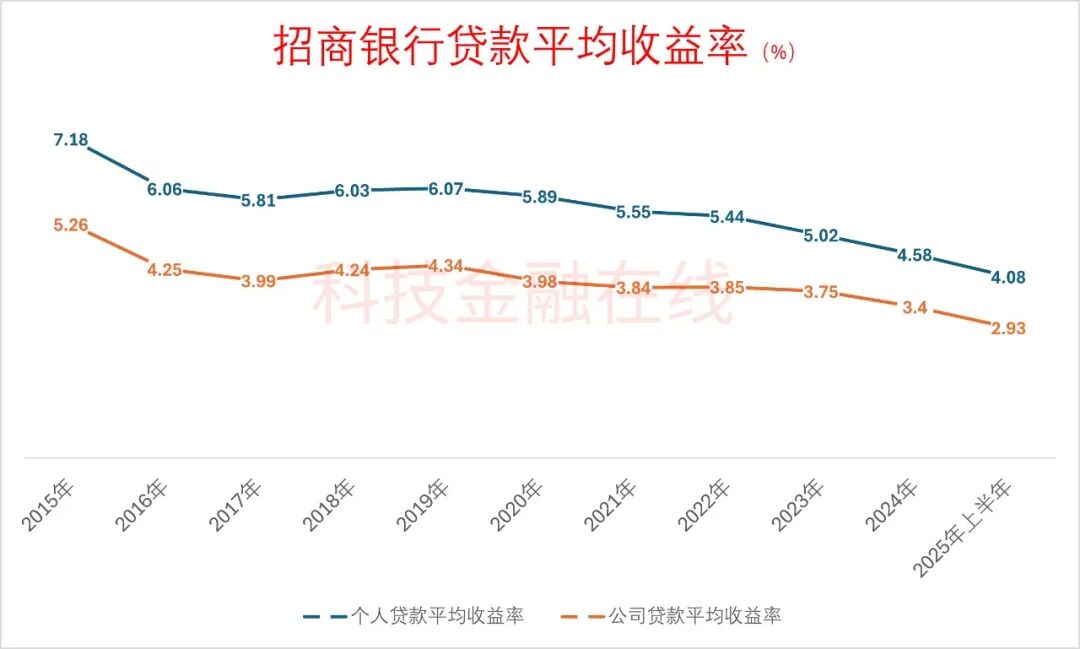 2015年,招行零卖贷款平均收益率为7.18%,到2024年底照旧降到了4.58%,到本年6月底进一步降到了4.08%。在进款利率束缚上升的情况下,零卖贷款的净息差越来越低。