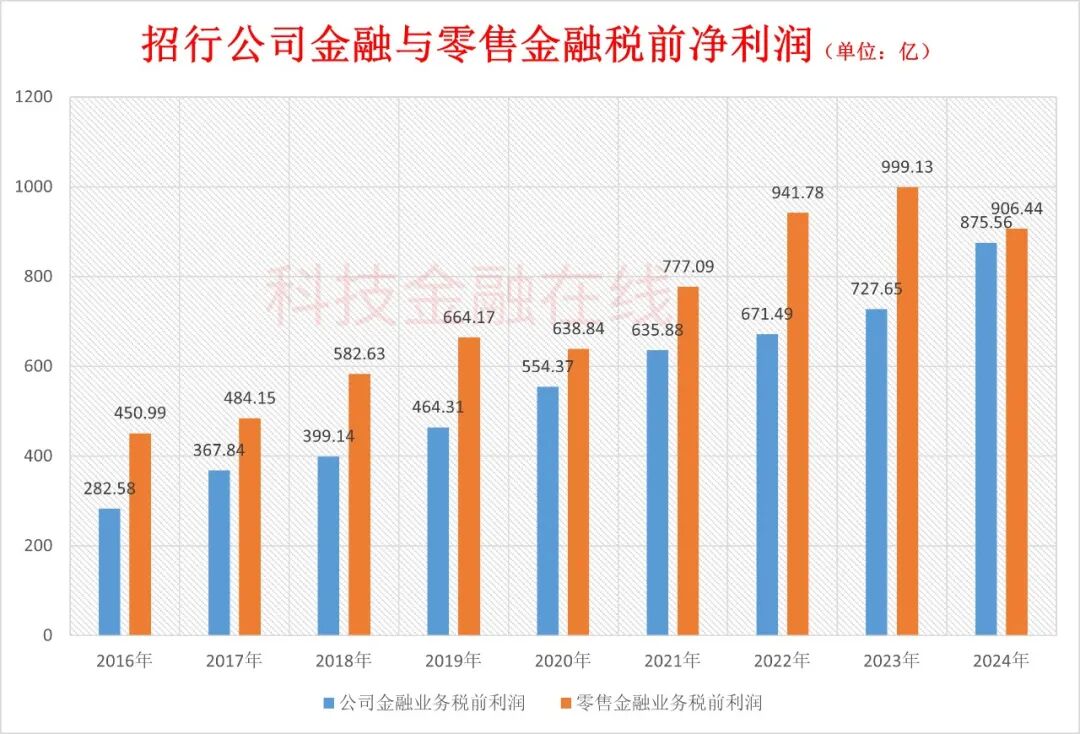 从税前净利润看,招商银行对公业务从容增强的趋势愈加流露,2024年全年对公业务税前利润875.56亿,零卖业务为906.44亿,两者比值为1.04,照旧不相高下。而在2016年,零卖业务与对公业务税前利润比值为1.6,零卖业务孝敬的利润远高于对公业务。